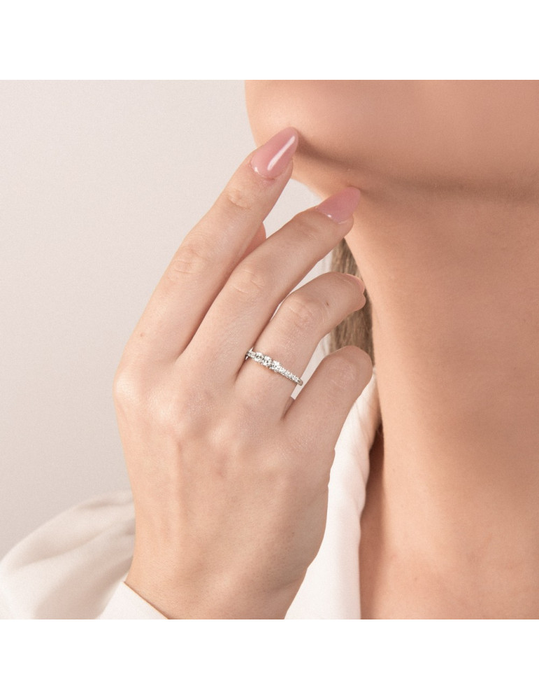 Anello trilogy Mirco Visconti II86/20 con diamanti taglio brillante per un totale di 33 punti di carato (Ct. 0,33) colore G, purezza VS, in oro bianco 750 (18 carati kt).
