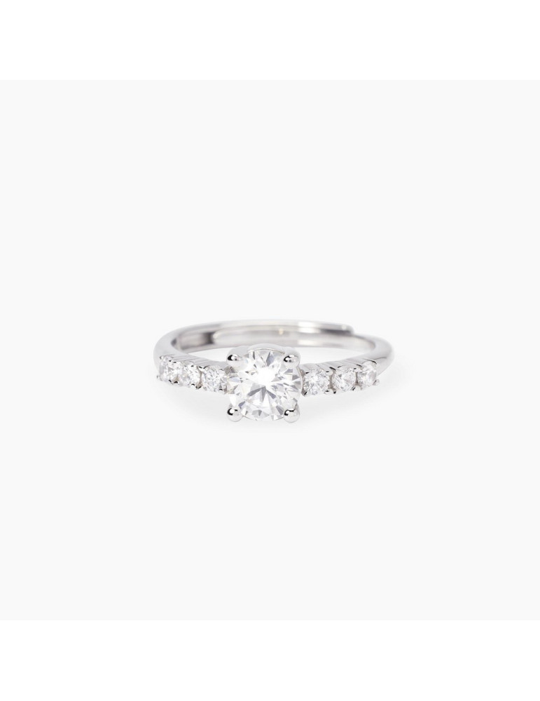 Anello regolabile in argento rodiato con zirconi bianchi.