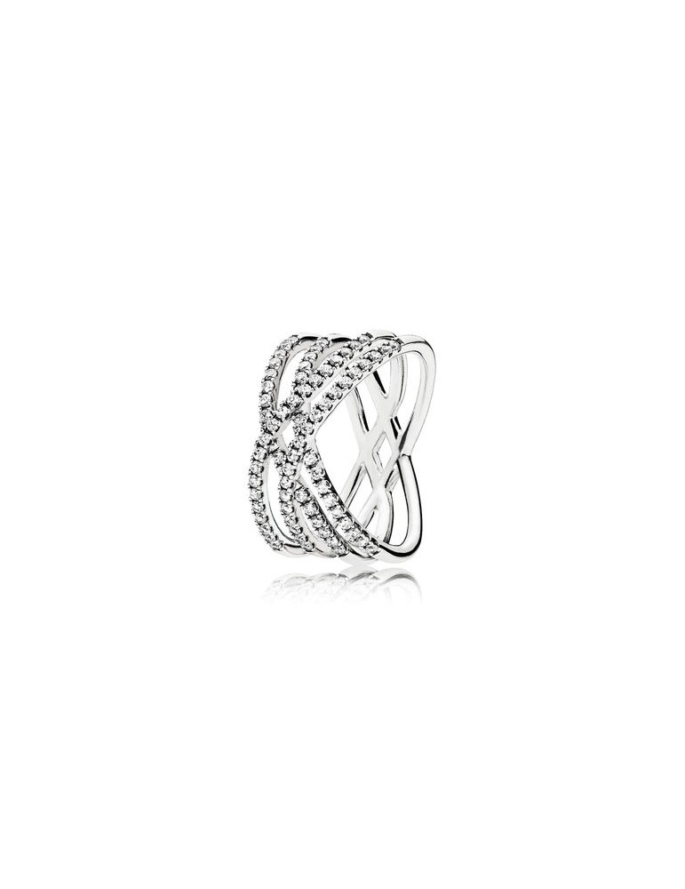 Anello Linee Cosmiche realizzato in Argento Sterling 925 e zirconi. Elegante regalo di compleanno per la donna che ama essere elegante e alla moda. Questo anello rappresenta un regalo perfetto per il giorno di san valentino. Questo luminoso anello, che interpreta la tendenza dell‘alternanza di spazi pieni e vuoti, è costituito da due linee di Argento Sterling 925 decorate con pietre, che orbitano e si intrecciano avvolgendo le dita. Un gioiello importante e lussuoso.