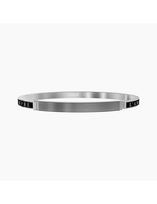 Men\'s bangle in satin steel and black with rectangular striped plate and written:\"Love between a father and his children is forever..