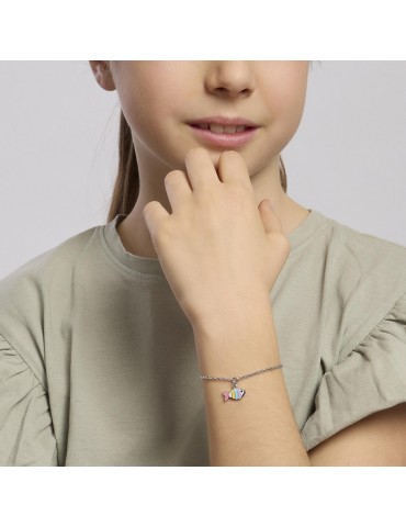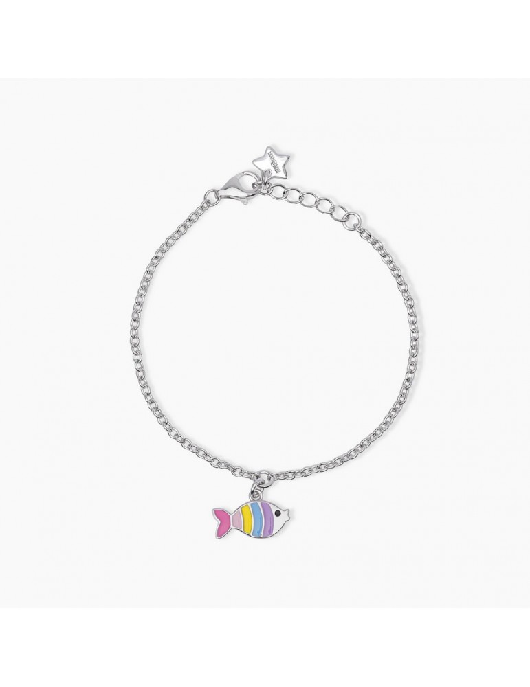 Bracelet in rhodium-plated silver with chain fortified and glazed fish.
