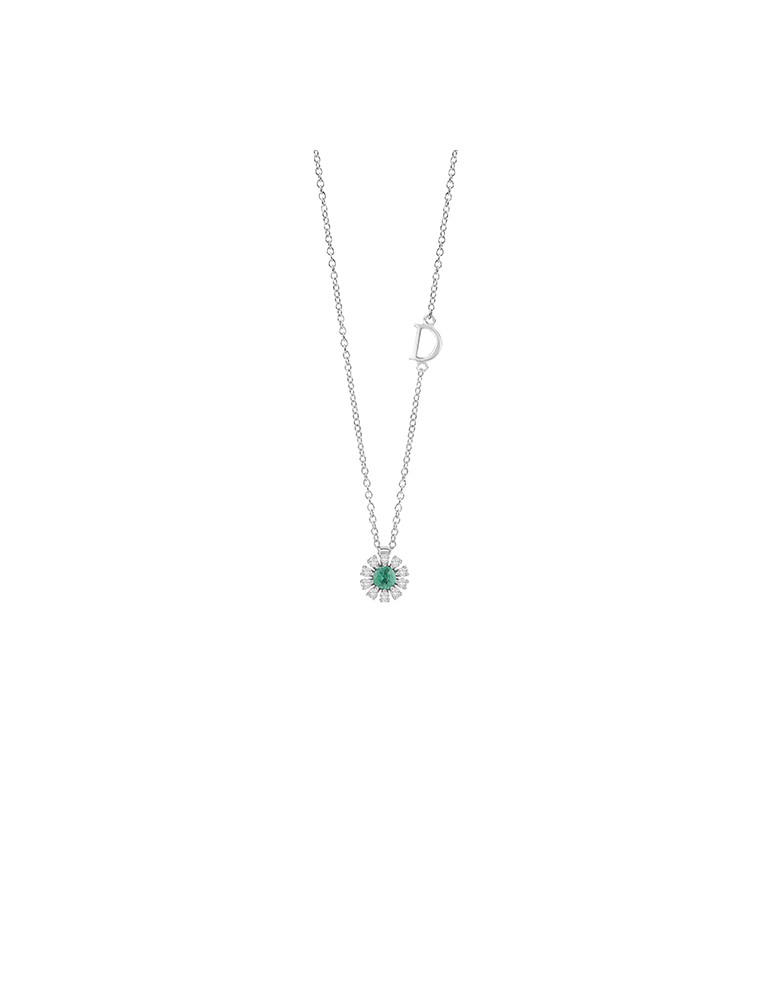 I gioielli della collezione Margherita sono custodi dell’incontro tra tradizione e design contemporaneo. Ispirati all’anello che Enrico Grassi Damiani dedicò alla Regina Margherita nei primi anni del ‘900, fondono la sapienza e il savoir-faire dei maestri orafi di Valenza in uno stile moderno. Questo splendido collierino con brillanti e smeraldo rappresentano il regalo perfetto per una persona veramente speciale che ama i colori e la freschezza di una collezione moderna. I brillanti carati 0.09 colore GH e lo smaeraldo carati 0.08 donano una lucentezza indescrivibile.
