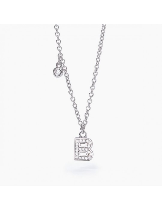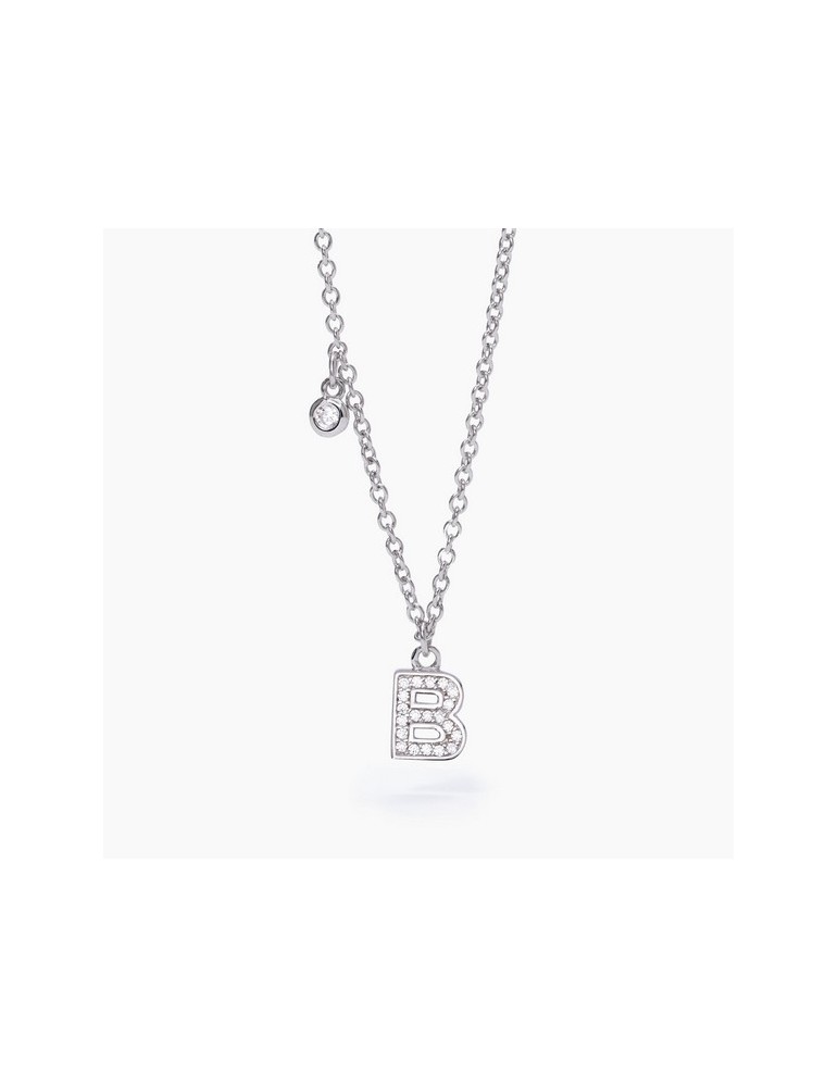 Round neck in silver with a fort chain and pendant in the shape of letter B with zircons.
