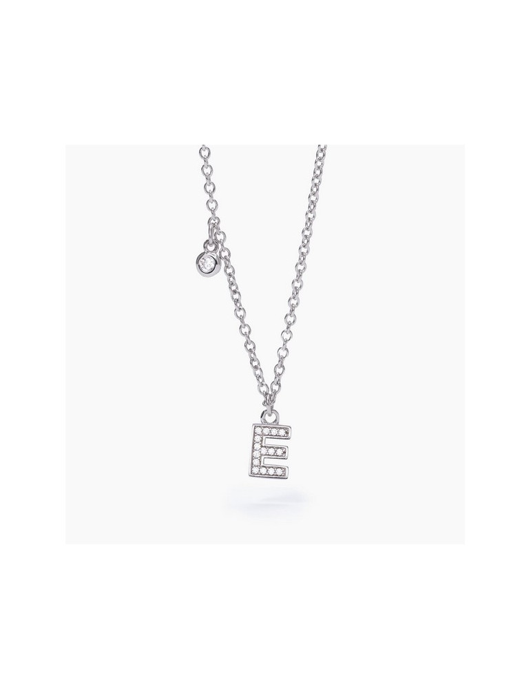 Round neck in silver with a fort chain and pendant in the shape of letter E with zircons.
