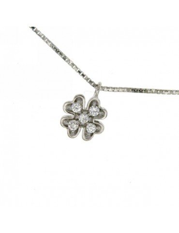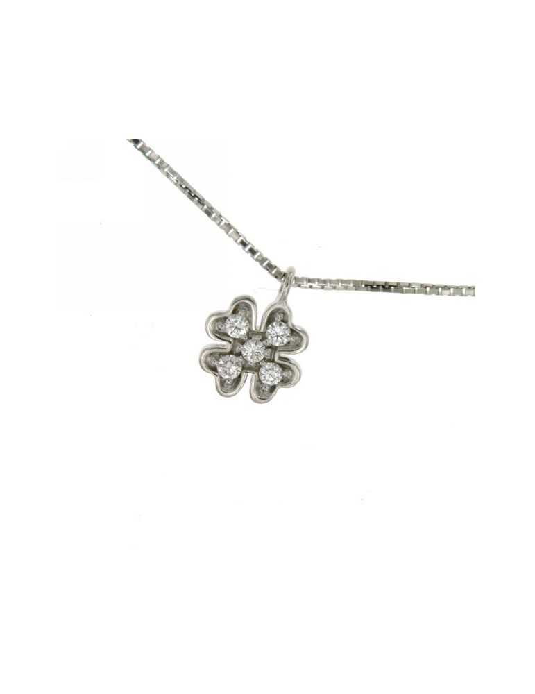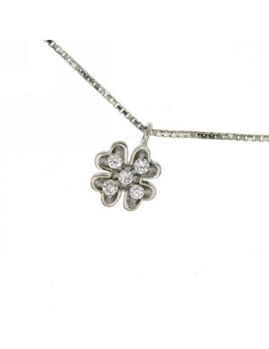 Flower Mirco Visconti Z654 collection necklace with brilliant cut diamonds for a total of 8 carato points (Ct. 0,08) color G, purity VS, in white gold 750 (18 kt carats).