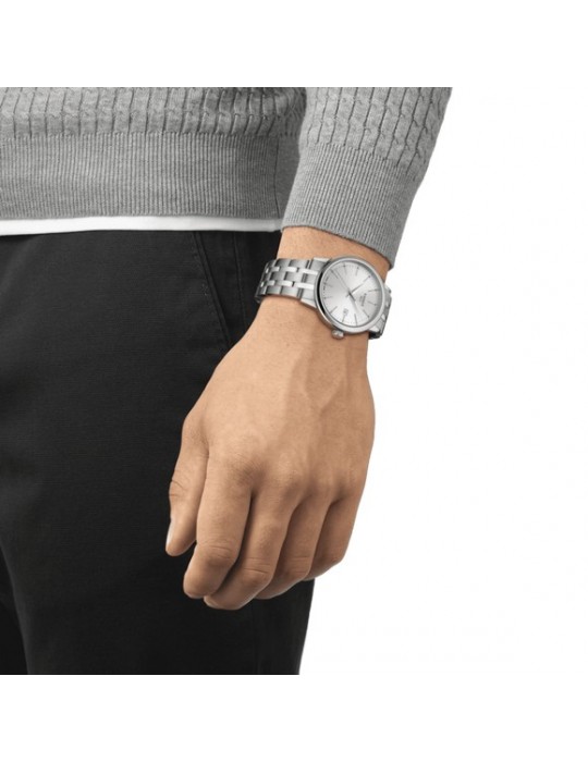 The Tissot Classic Dream is a historical model of the brand, ideal for those looking for a classic product with minimalist design. Made of 316L stainless steel, this high quality alloy allows strong corrosion resistance and excellent durability. Dauphine hands ensure precise legibility, with a distinctive character and a clean look. This beautiful version with silver dial represents a perfect gift for a birthday, a graduation or an anniversary or even for a wedding witness.