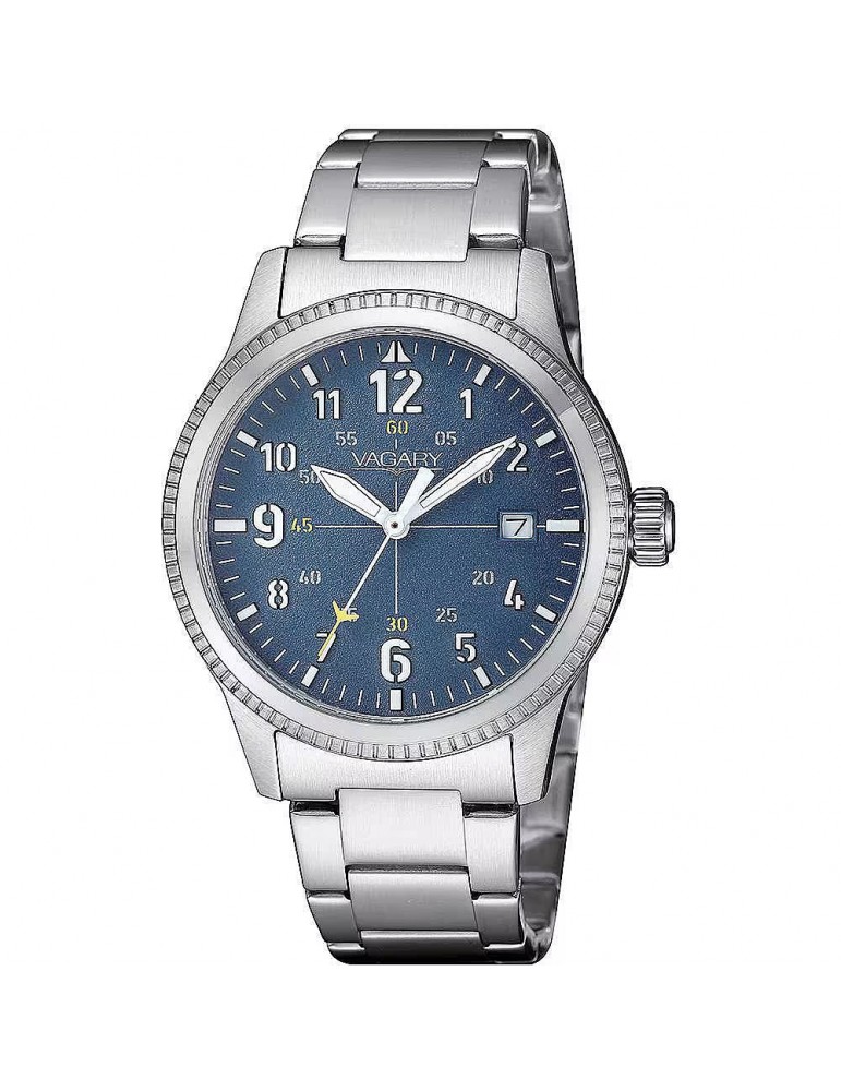 Solo Time Clock by Vagary Man from the Flyboy Collection. Model With Stainless Steel Case Diameter 36 Mm, Dial With Numeral Indexes And Stainless Steel Strap And Push Button Clasp. Watch Equipped with Movement Al Quartz and Water Resistance 5 Atm Perfect gift for birthday, confirmation or communion of a smart person and sports/casual look.