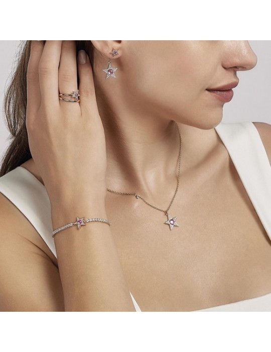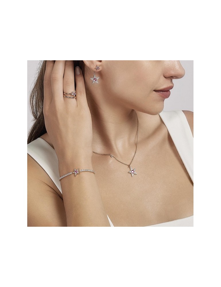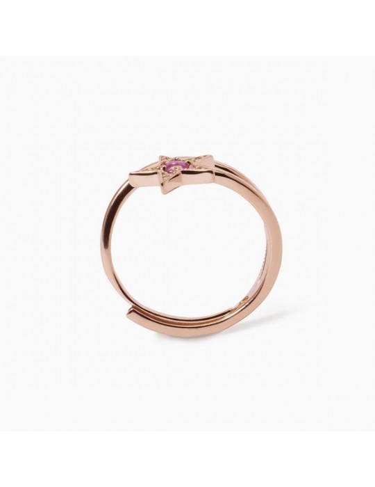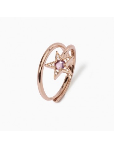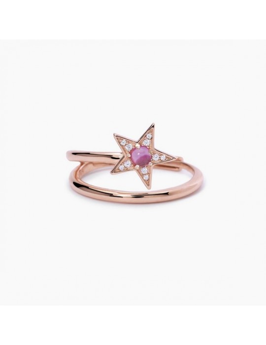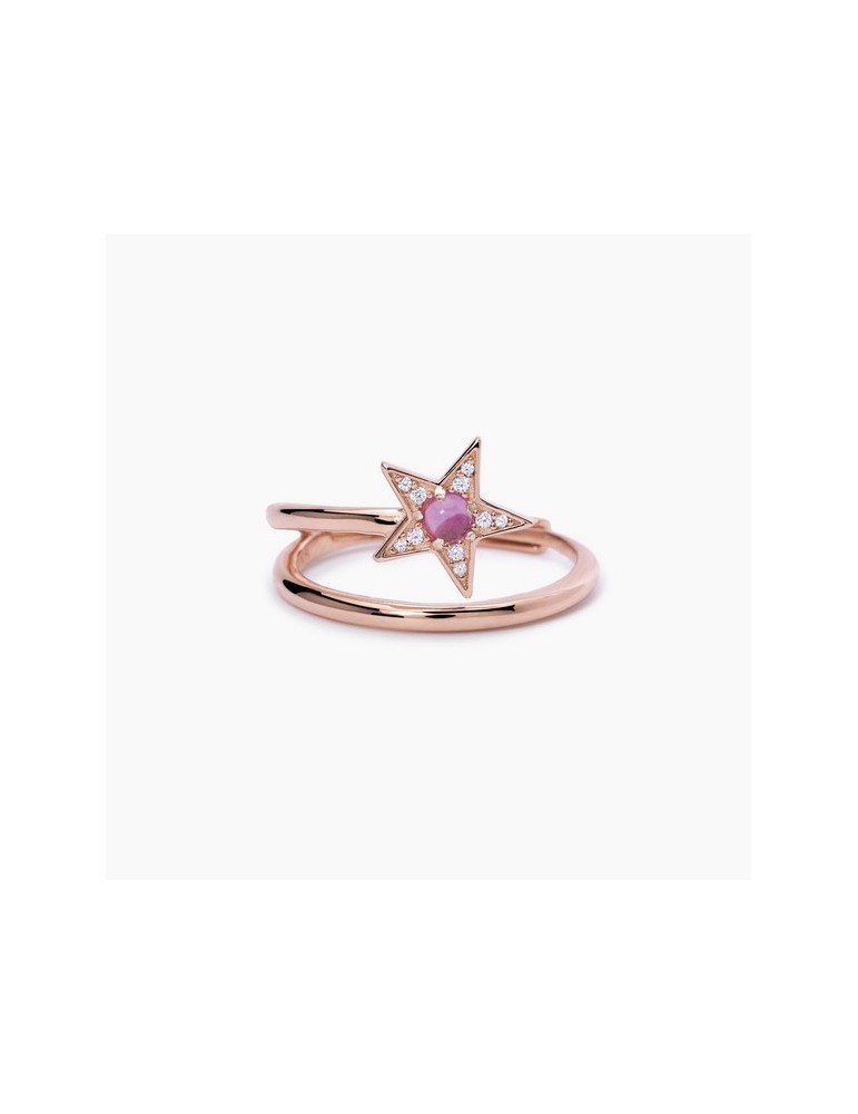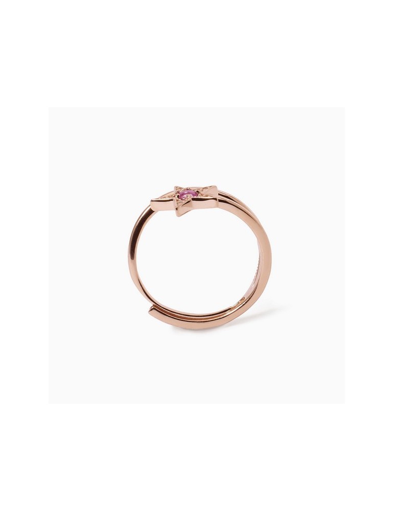 Adjustable ring in pink silver with star in white zirconia pavè and central synthetic tormaline.