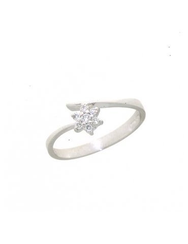 Ring of the collection Fiori Mirco Visconti BG331 with central flower embellished with brilliant cut diamonds for a total of 10 carato points (Ct. 0.10) color G, purity VS, in white gold 750 (18 kt carats).