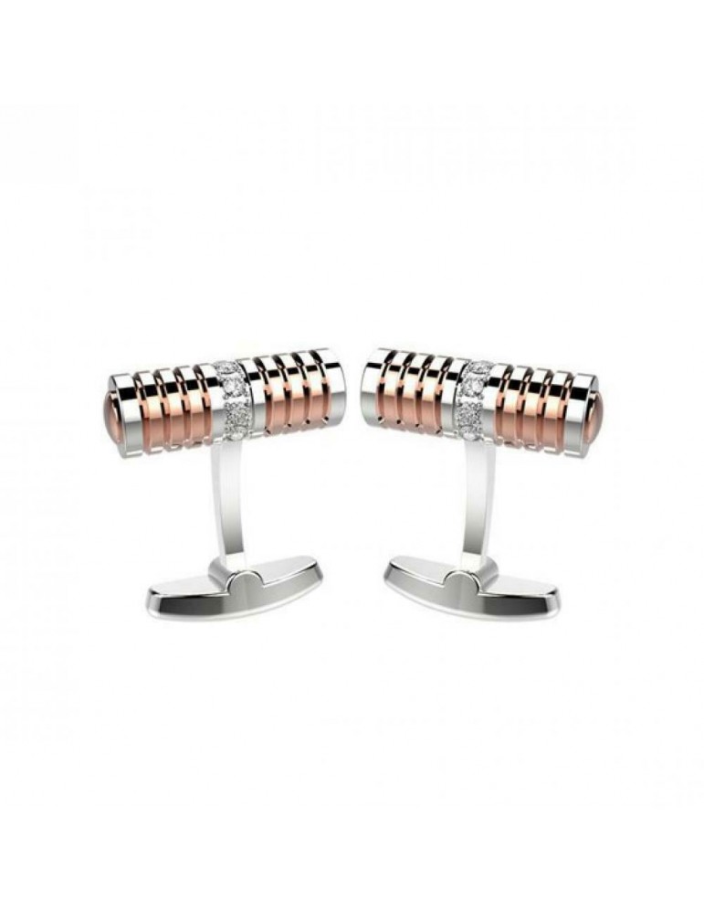 Gemelli in acciaio e placcato oro rosa con zirconi bianchi. Gioiello realizzato in acciaio 316L ipoallergenico. Accessorio dallo stile pregiato, esalto il tuo comportamento formale e bon ton. I gioielli Zancan sono il miglior regalo che un uomo possa concedersi.