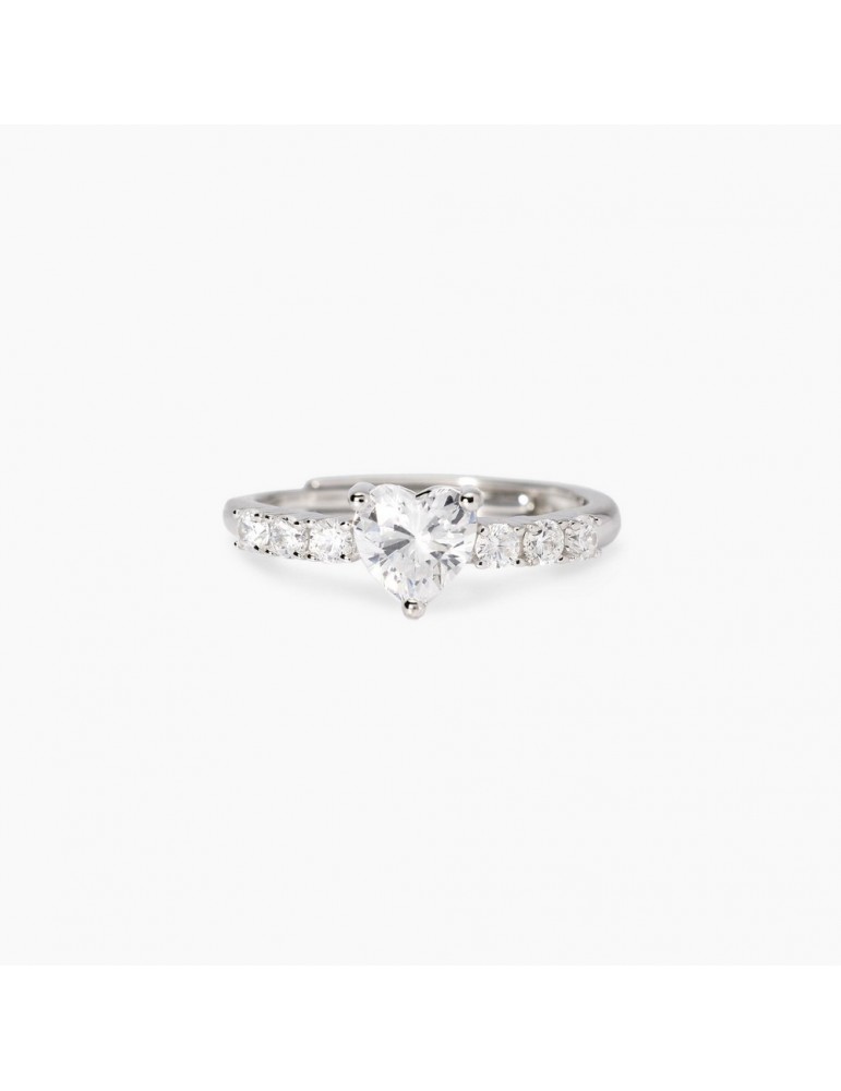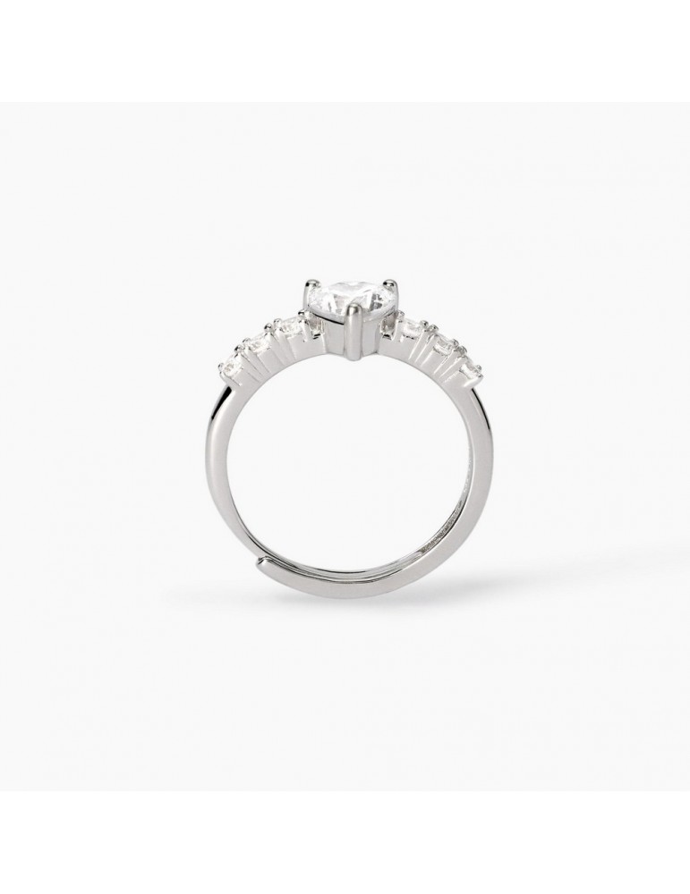 Anello regolabile in argento con zirconi bianchi e zircone centrale forma cuore.