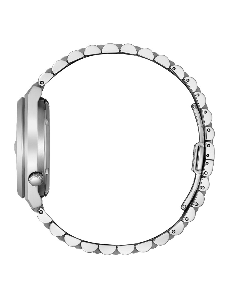In questa versione il Tsuyosa Nk0020-55E è caratterizzato dalla cassa in acciaio da 40 mm con finitura satinata e lunetta lucida, quadrante nero, con datario ad ore 3. Il bracciale jubilee anch’esso in acciaio è dotato di chiusura a scomparsa .