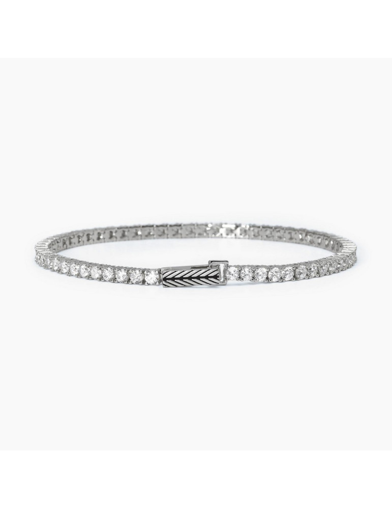Bracciale tennis da uomo in argento brunito con zirconi bianchi.