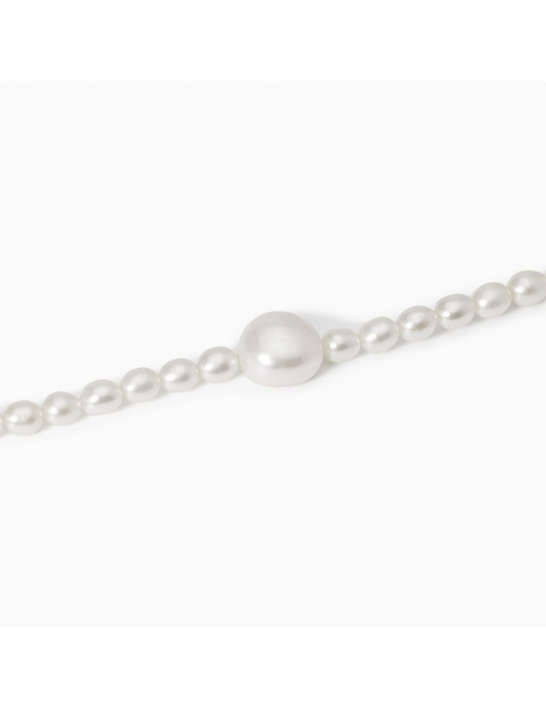 Bracciale da donna in argento rodiato con perle riso e perla centrale barocca.