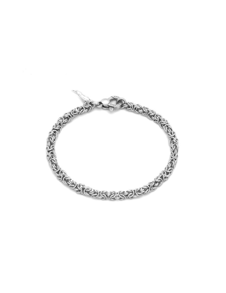 Una classica catena che ha fatto la storia della gioielleria, da sempre best seller del brand, diventa prezioso bracciale in argento. E' la maglia bizantina in versione mini mini, lavorata artigianalmente, col suo particolarissimo ed elegante intreccio. Un gioiello versatile che si presta ad un indosso sia maschile che femminile.