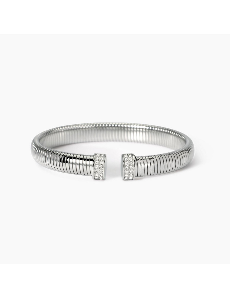 Bracciale in acciaio 316L con maglia tubogas in acciao 304 e cristalli bianchi.