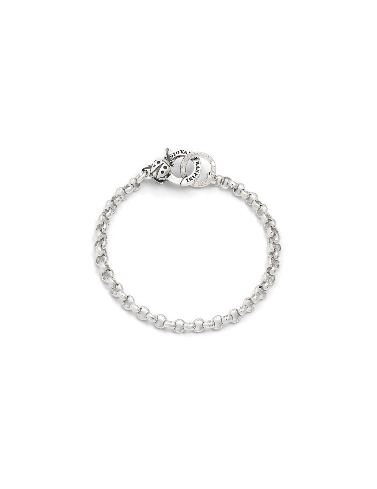 Un bracciale essenziale e raffinato, pensato per accogliere i tuoi charms in un’elegante composizione personalizzata. Realizzato in catena rolò d’argento, questo gioiello si distingue per la chiusura con brisé logato e un delicato decoro a forma di coccinella, fuso a cera persa secondo l’antica tradizione orafa. Interamente fatto a mano in azienda.