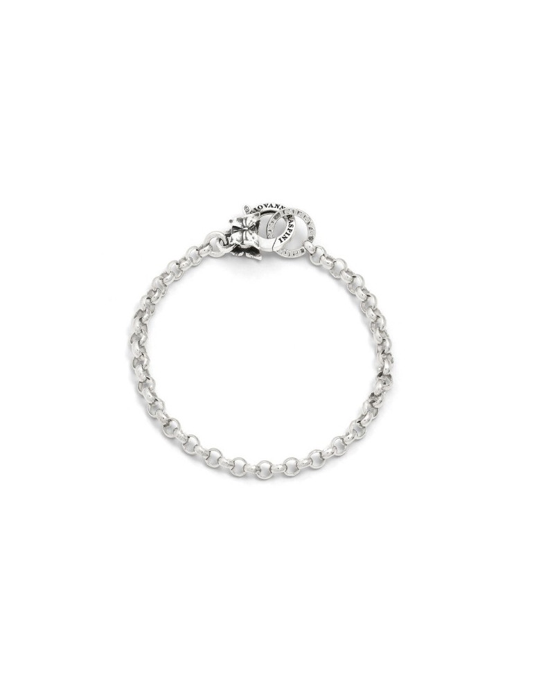 Un bracciale essenziale e raffinato, pensato per accogliere i tuoi charms in un’elegante composizione personalizzata. Realizzato in catena rolò d’argento, questo gioiello si distingue per la chiusura con brisé logato e un delicato decoro a forma di farfalla, fuso a cera persa secondo l’antica tradizione orafa. Interamente fatto a mano in azienda.