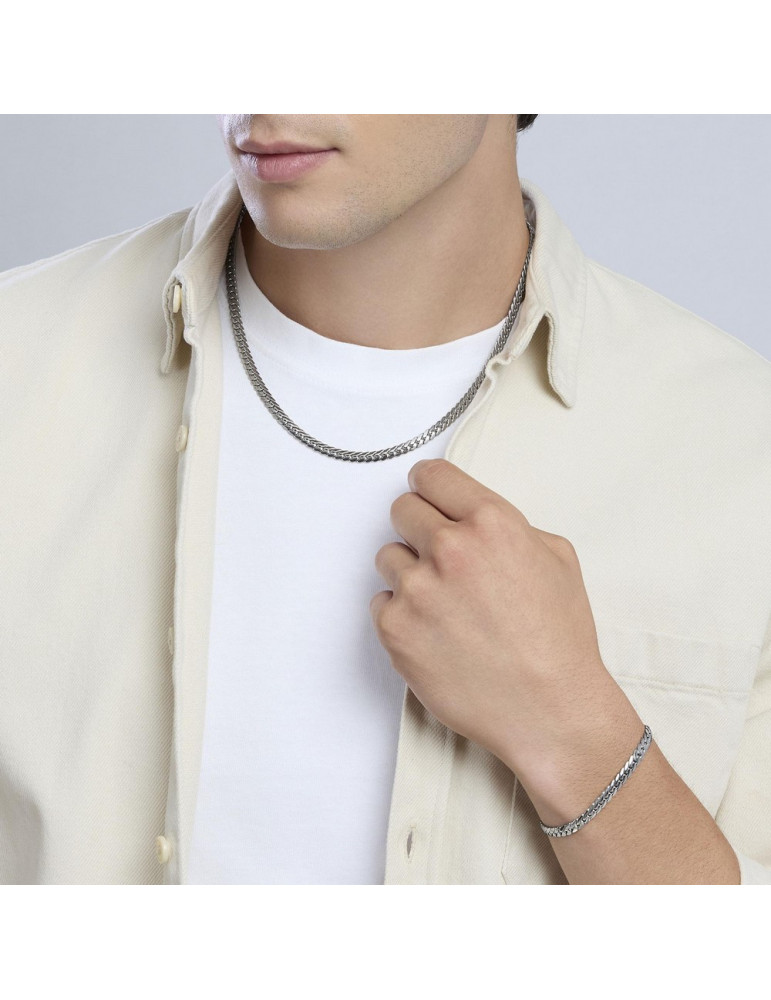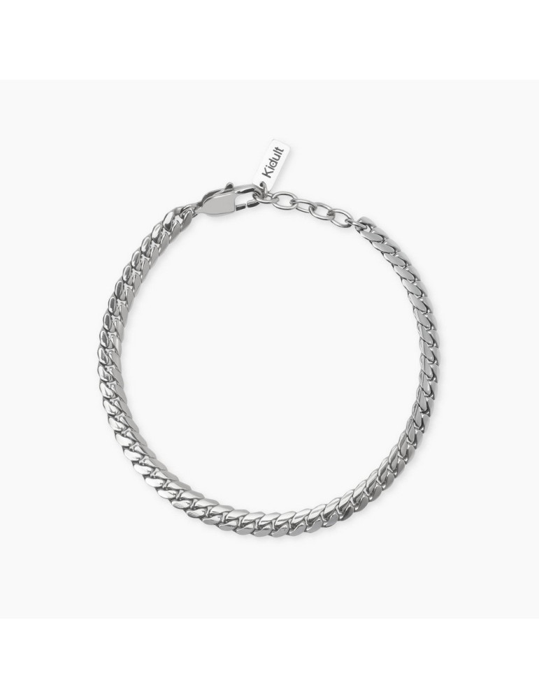 Bracciale regolabile in acciaio con catena groumette piatta.
