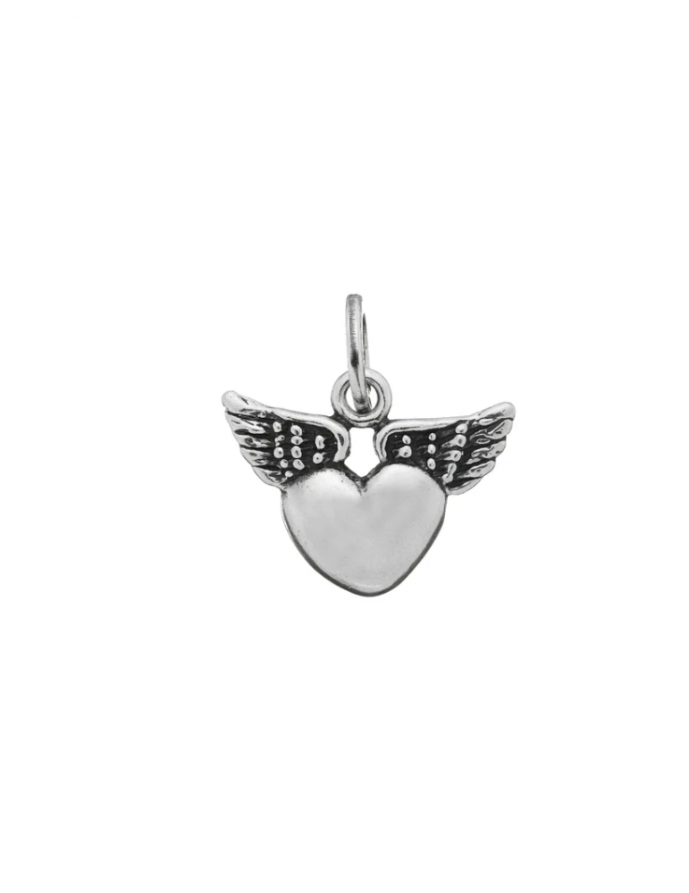 Charm della collezione Giovanni Raspini Cuori e Angeli da donna. Colore: argento. Il charm è in argento 925‰ a forma di cuore alato, munito di maglina con logo. Peso: 4 gr. Altezza: 2,6 cm (esclusa maglina di 0,9 cm). I gioielli Giovanni Raspini sono interamente realizzati a mano in Italia.