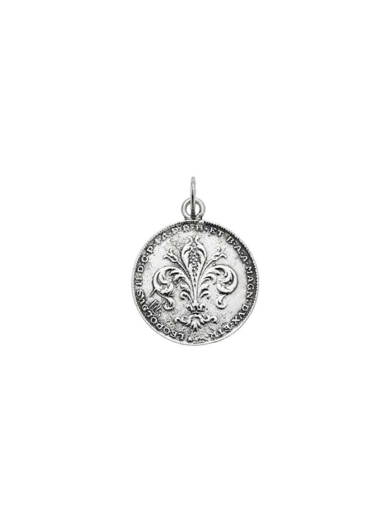 Charm della collezione Giovanni Raspini Monete unisex. Colore: argento. Il charm è in argento 925‰ a forma di medaglia con all'interno raffigurato il giglio di Firenze, munito di maglina con logo. I gioielli Giovanni Raspini sono interamente realizzati a mano in Italia.