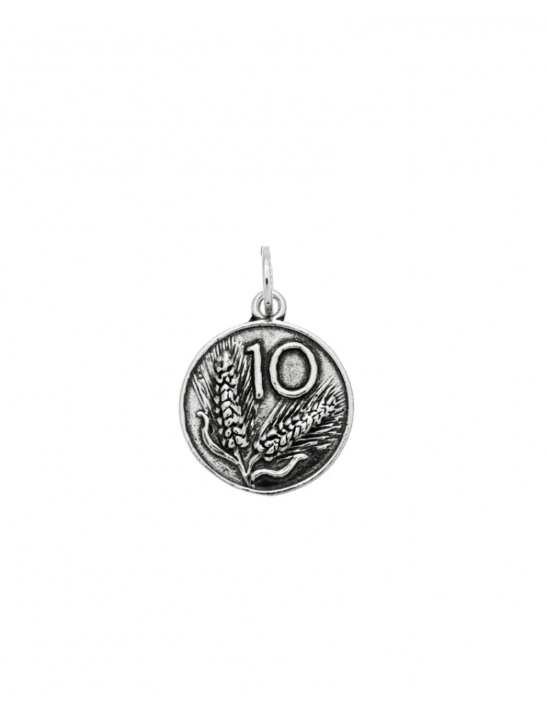 Charm della collezione Giovanni Raspini Monete unisex. Colore: argento. Il charm è in argento 925‰ a forma di 10 Lire, munito di maglina con logo. Peso: 8 gr. Altezza: 3,2 cm (esclusa maglina di 0,9 cm). I gioielli Giovanni Raspini sono interamente realizzati a mano in Italia.