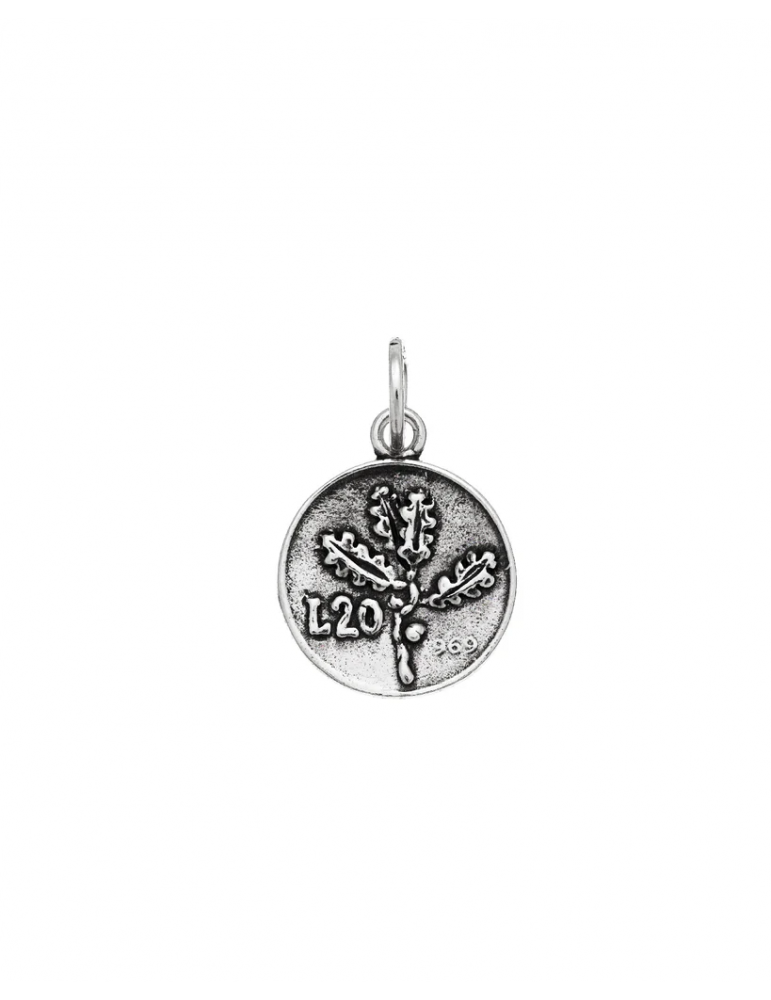 Charm della collezione Giovanni Raspini Monete unisex. Colore: argento. Il charm è in argento 925‰ a forma di 20 Lire, munito di maglina con logo. Peso: 4 gr. Altezza: 2,7 cm (esclusa maglina di 0,9 cm). I gioielli Giovanni Raspini sono interamente realizzati a mano in Italia.
