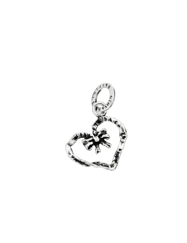 Charm della collezione Giovanni Raspini Cuori e Angeli da donna. Colore: argento. Il charm è in argento 925‰ rappresenta un fiocco a forma di cuore, munito di maglina con logo. I gioielli Giovanni Raspini sono interamente realizzati a mano in Italia.