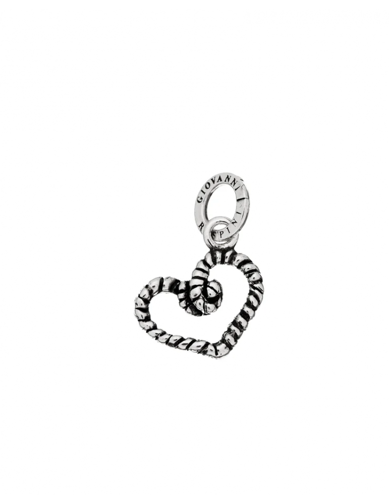 Charm della collezione Giovanni Raspini Cuori e Angeli da donna. Colore: argento. Il charm è in argento 925‰ rappresenta una corda a forma di cuore, munito di maglina con logo. I gioielli Giovanni Raspini sono interamente realizzati a mano in Italia.