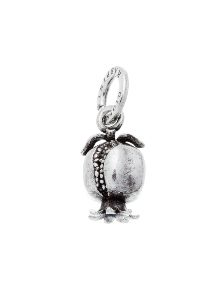 Charm della collezione Giovanni Raspini Gourmet da donna. Colore: argento. Il charm è in argento 925‰ a forma di melagrana, munito di maglina con logo. Peso: 4 gr. Altezza: 1,7 cm (esclusa maglina di 0,9 cm). I gioielli Giovanni Raspini sono interamente realizzati a mano in Italia.