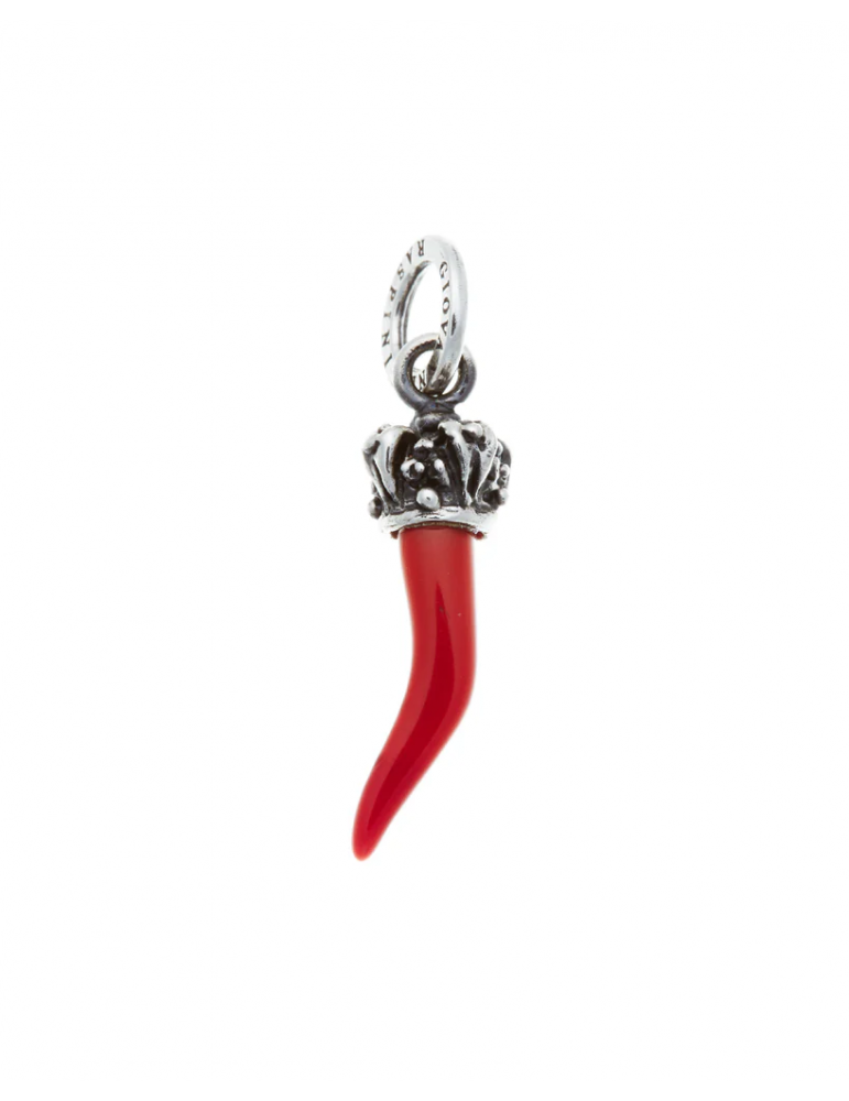 Charm della collezione Giovanni Raspini Amuleti unisex. Colore: argento e rosso. Il charm è in argento 925‰ a forma di cornetto rosso con la corona, munito di maglina con logo. I gioielli Giovanni Raspini sono interamente realizzati a mano in Italia.