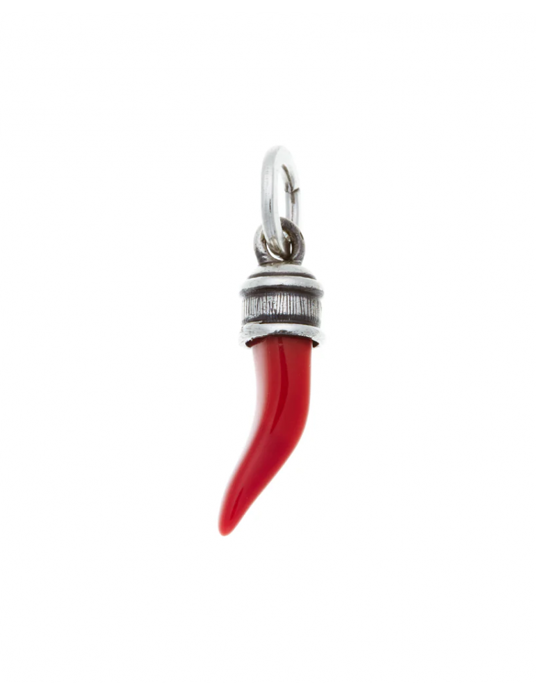 Charm della collezione Giovanni Raspini Amuleti unisex. Colore: argento e rosso. Il charm è in argento 925‰ a forma di cornetto rosso liscio, munito di maglina con logo. I gioielli Giovanni Raspini sono interamente realizzati a mano in Italia.