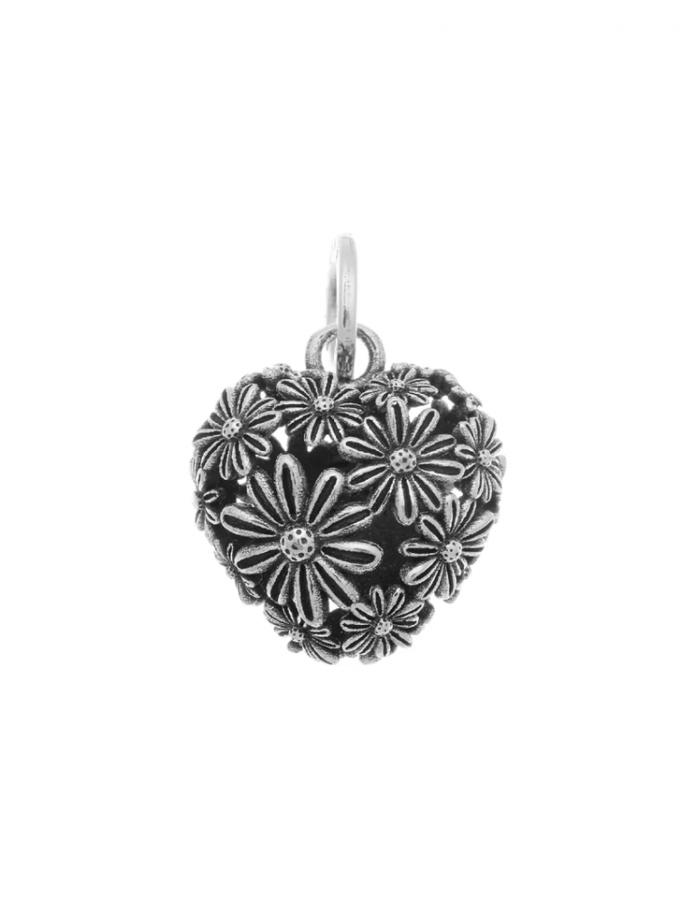 Charm della collezione Giovanni Raspini Cuori e Angeli da donna. Colore: argento. Il charm è in argento 925‰ a forma di cuore con all'interno delle margherite, munito di maglina con logo. I gioielli Giovanni Raspini sono interamente realizzati a mano in Italia.