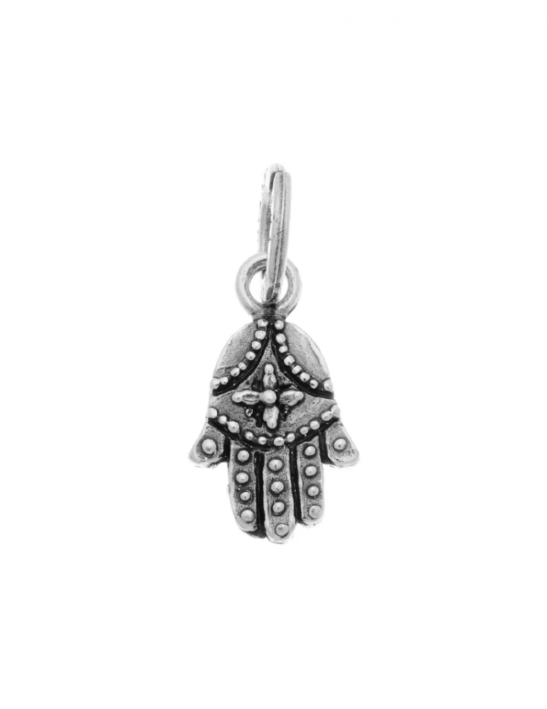 Charm della collezione Giovanni Raspini Varie da donna. Colore: argento. Il charm è in argento 925‰ a forma di mano di Fatima, munito di maglina con logo. Peso: 1 gr. Altezza: 1 cm (esclusa maglina di 0,9 cm). I gioielli Giovanni Raspini sono interamente realizzati a mano in Italia.