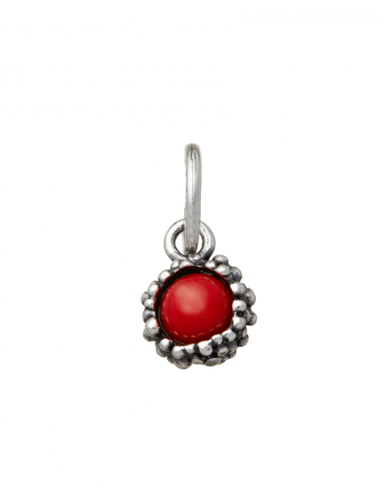 Charm pendente della collezione Giovanni Raspini Perlage da donna. Colore: argento e rosso. Il charm è realizzato in argento 925‰ con pietra di coral bambù rosso. Altezza: 1,3 cm. I gioielli Giovanni Raspini sono interamente realizzati a mano in Italia.