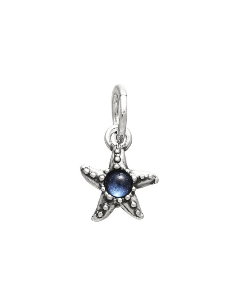 Charm della collezione Giovanni Raspini Mare da donna. Colore: argento e blu. Il charm è in argento 925‰ con pietra Siamite blu a forma di stella marina, munito di maglina con logo. Peso: 2 gr. Altezza: 1,6 cm (esclusa maglina di 0,9 cm). I gioielli Giovanni Raspini sono interamente realizzati a mano in Italia.