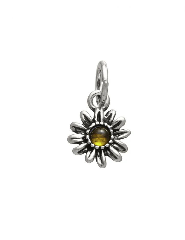 Charm della collezione Giovanni Raspini Floral da donna. Colore: argento e giallo. Il charm è in argento 925‰ con pietra Siamite gialla a forma di margherita, munito di maglina con logo. Peso: 2 gr. Altezza: 1,6 cm (esclusa maglina di 0,9 cm). I gioielli Giovanni Raspini sono interamente realizzati a mano in Italia.