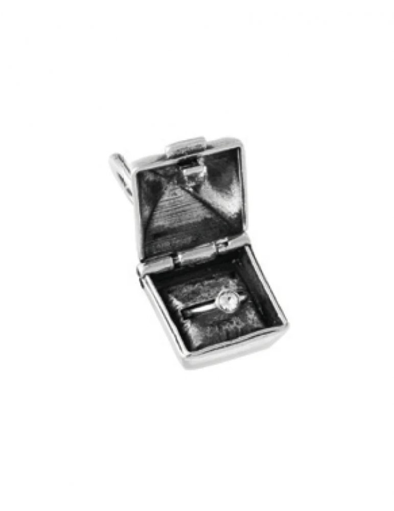 Charm della collezione Giovanni Raspini Fashion da donna. Colore: argento. Il charm è in argento 925‰ a forma di scatola apribile con all'interno anello solitario, munito di maglina con logo. Peso: 5,6 gr. Altezza: 1,7 cm (esclusa maglina di 0,9 cm). I gioielli Giovanni Raspini sono interamente realizzati a mano in Italia.