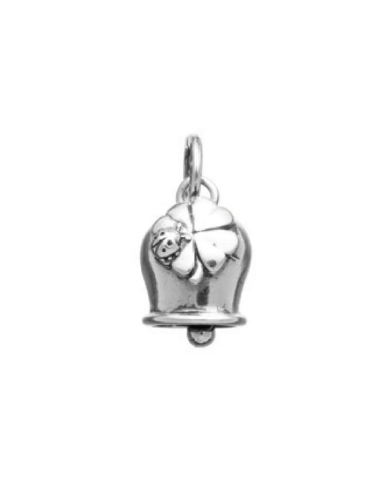 Charm della collezione Giovanni Raspini Amuleti da donna. Colore: argento. Il charm è in argento 925‰ a forma di campanello con quadrifoglio e coccinella, munito di maglina con logo. Peso: 4,7 gr. Altezza: 1,9 cm (esclusa maglina di 0,9 cm). I gioielli Giovanni Raspini sono interamente realizzati a mano in Italia.