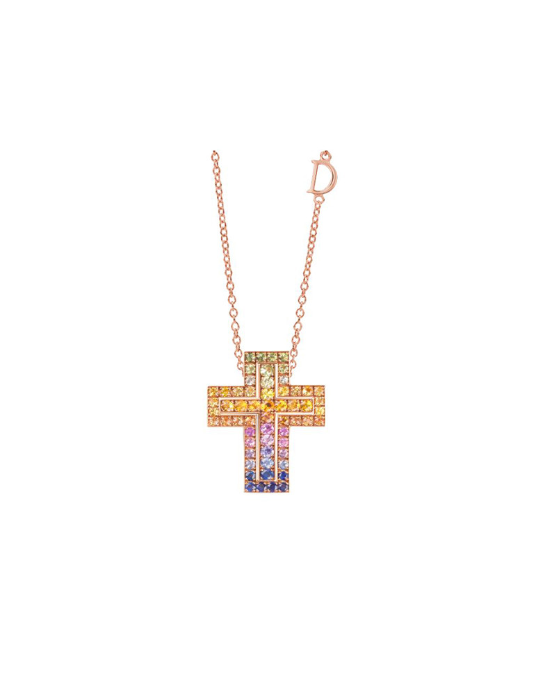 Collana in oro rosa con zaffiri multicolore di Damiani della collezione Belle Epoque.