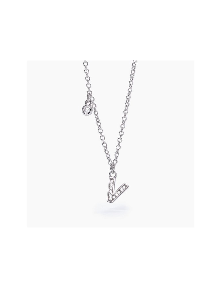 Girocollo in argento con catena forzatina e ciondolo a forma di lettera V con zirconi.