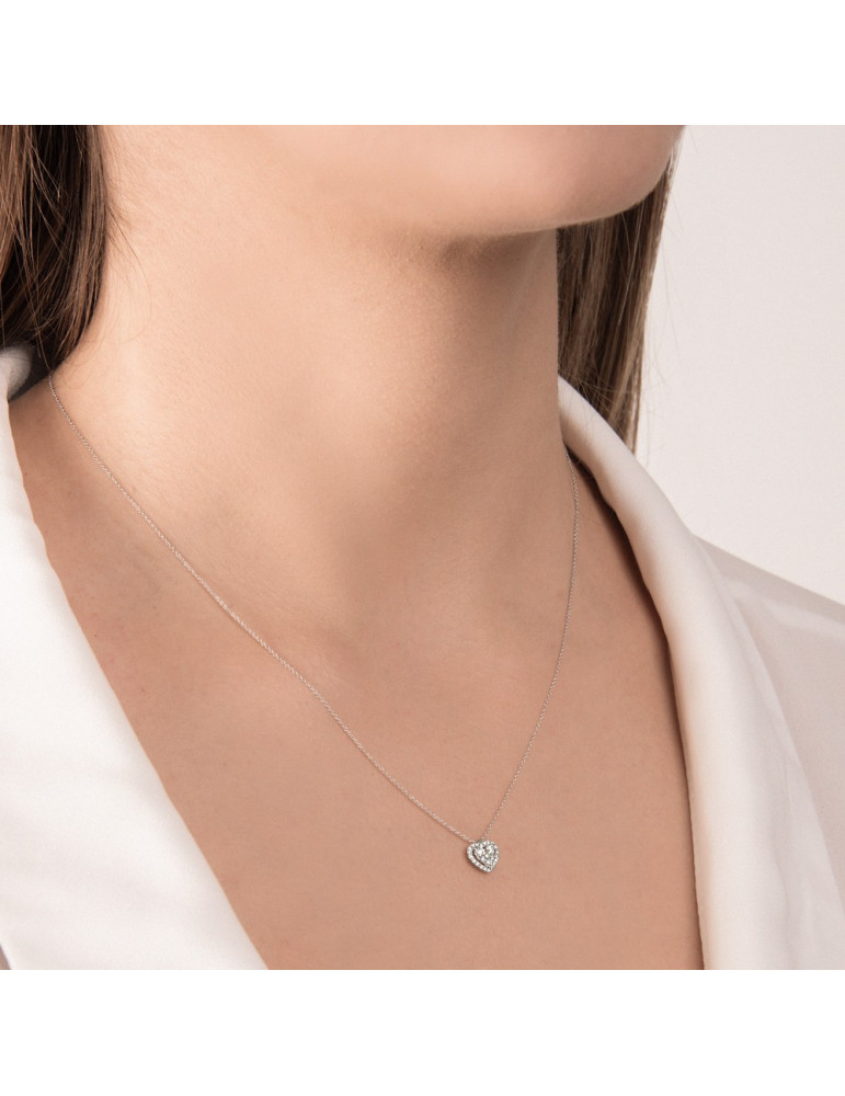 Collana donna Mirco Visconti ABA1071/10 con pendente a forma di cuore impreziosito da splendidi diamanti taglio brillante per un totale di 14 punti di carato (Ct. 0,14) colore G, purezza VS, in oro bianco 750 (18 carati kt).