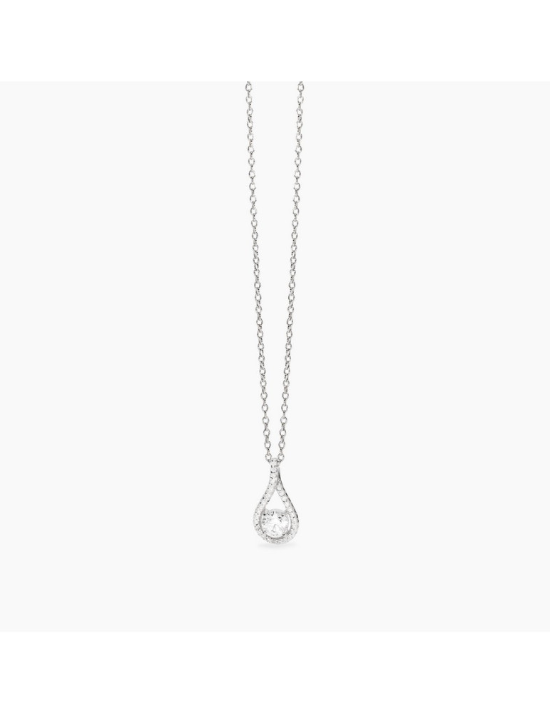 Girocollo in argento con catena rolò e pendente a goccia con zirconi.