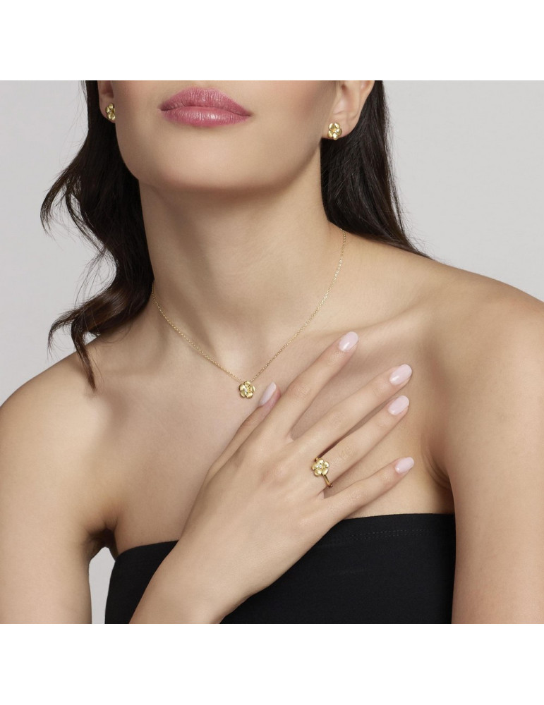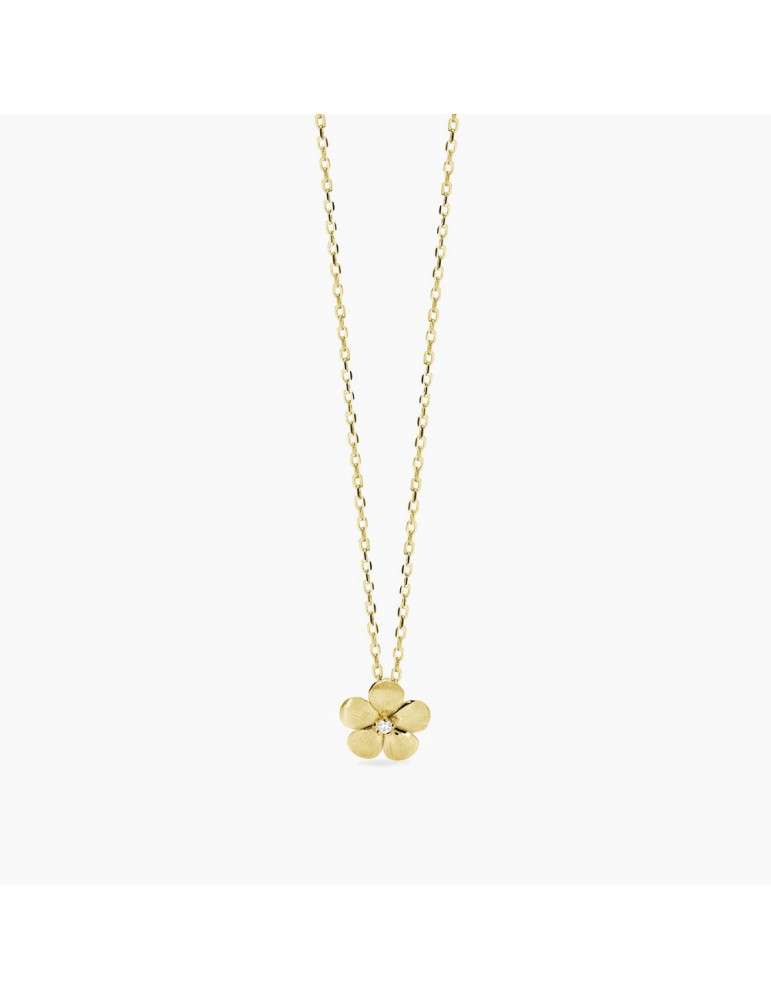 Girocollo regolabile in argento con catena forzatina diamantata e fiore bulinato placcato 18K con zircone.