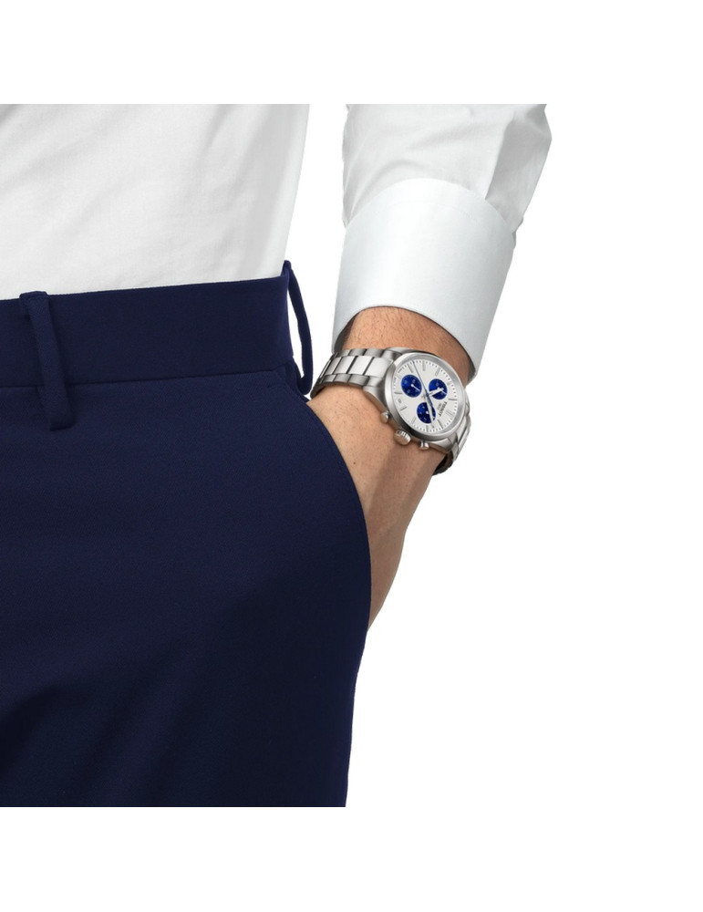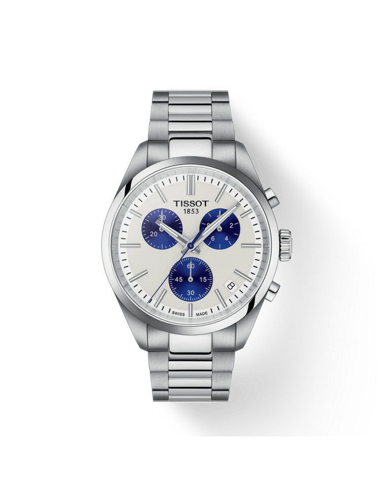 La collezione PR100 offre cronografi al quarzo classici in vari colori. Questi orologi sportivi ma eleganti presentano una fila centrale lucida sul bracciale per un look più brillante, datario e una lancetta dei secondi standard. Il movimento cronografo al quarzo G10.212 offre precisione e robustezza, completate da un'impermeabilità fino a 10 bar (100 metri/330 piedi), mentre la visibilità in condizioni di scarsa illuminazione è garantita dal rivestimento in Super-LumiNova® sulle lancette a forma di ago. Questa splendida versione con quadrante bianco rappresenta una perfetta idea regalo per testimone di nozze.