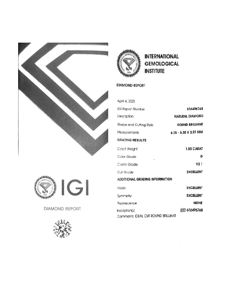 Nivoda - Diamante Igi Ct 1.00 - D - Vs1 - Ex Ex Ex