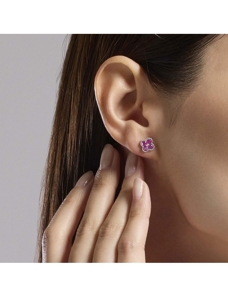Orecchini in argento con fiore in tormaline rosa sintetiche.