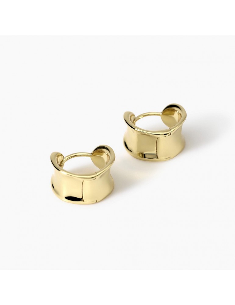 Orecchini a cerchio in argento placcato oro 18K con forma ondulata.
