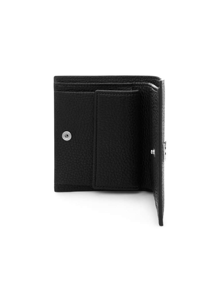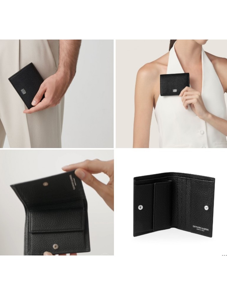 Eleganza, praticità ed eccellenza artigianale per questo portafoglio in pregiata pelle di vitello goffrata nera, che presenta 4 scomparti per carte di credito, uno scomparto per le banconote, una comoda tasca a patta per le monete e una tasca nascosta. Questo prodotto rappresenta la massima eccellenza artigianale che da sempre contraddistingue il brand Giovanni Raspini, ed è impreziosito da un caratteristico elemento in Argento 925, realizzato in fusione a cera persa e raffigurante il logo del brand in miniatura, sovrastato dall'iconico coccodrillo. Lavorato interamente a mano in Toscana. Un regalo di compleanno elegante e raffinato totalmente made in Italy.