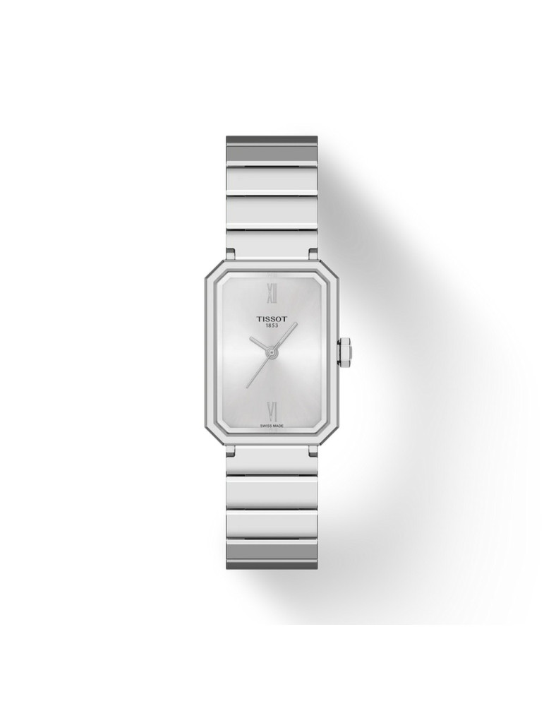 L'orologio SRV si ispira all'Art Déco, sviluppatosi negli anni '20. Quest'epoca è caratterizzata da forme geometriche e motivi astratti, diventati uno stile dominante in architettura, interior design, moda e arti grafiche. Sebbene l'SRV si ispiri direttamente a un modello del 1975, quel design era a sua volta una reinterpretazione delle precedenti creazioni Tissot degli anni '20. Il movimento al quarzo dell'SRV offre una precisione che consente di avanzare con grinta e, grazie all'indicatore di fine vita, l'SRV anticipa la sua prossima mossa, per essere sempre pronto. Più che un nome, SRV sta per Sapphire Rectangle V: un vetro zaffiro sfaccettato con una silhouette rettangolare, e la "V" è un omaggio alla sua impermeabilità di 5 bar, simboleggiata dal numero romano 5. Il bracciale in metallo è comodo, robusto, facile da pulire e di lunga durata.